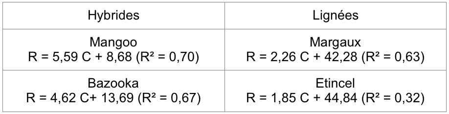 Autre enseignement : les variétés semblent réagir de façon plus ou moins marquée au potentiel de sol. Les hybrides (de blés et d’orges) présentent globalement des corrélations plus élevées que celles constatées avec les variétés autogames (lignées).